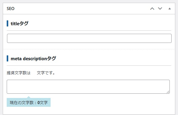 各ブログの下に画像のようなタイトルと、メタディククリプションを入力する欄があります。
